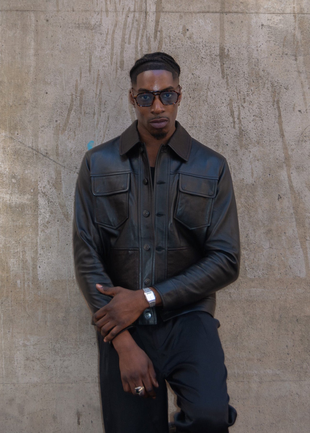 Détail en cuir sur la poche